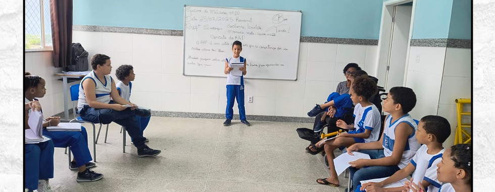 Oficina de Música voltada para o RAP e TRAP, nº 10, realizada dia 25/07/2025, na Escola Municipal Professor Afonso Temporal, no turno vespertino, com a turma do 4º ANO D, do ensino fundamental 1:
